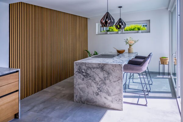 Maßgeschneiderte Küchenarbeitsplatte aus Naturstein oder Keramik